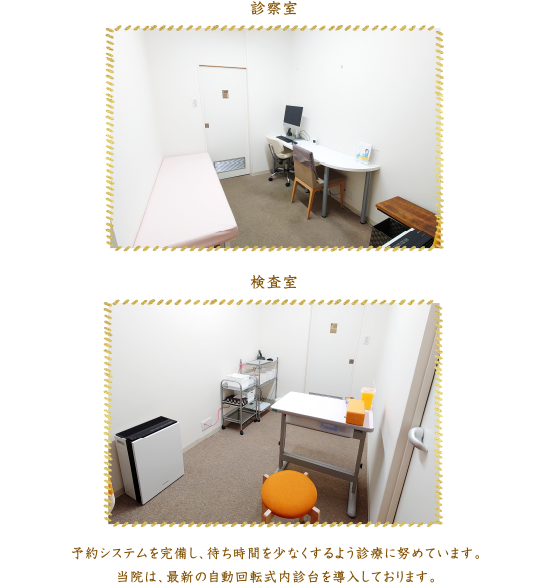 予約システムを完備し、待ち時間を少なくするよう診療に努めています。当院は、最新の自動回転式内診台を導入しております。