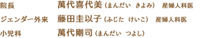 院長 萬代喜代美(まんだい きよみ) 小児科 萬代剛司(まんだい つよし)